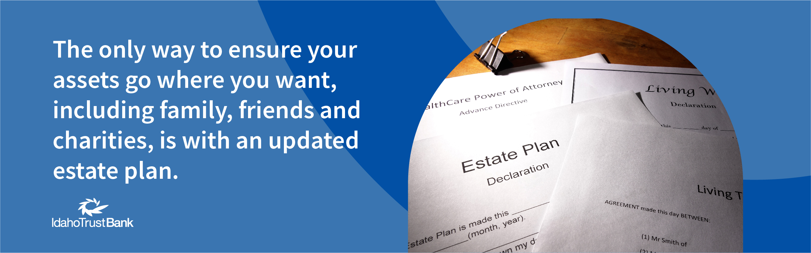 At Idaho Trust Bank, we can assist by acting as your executor, trustee, or conservator or providing estate settlement services, relieving the burden on your loved ones when the time comes. However, we recommend consulting with an experienced estate planning attorney to create an estate plan and the necessary legal documents.